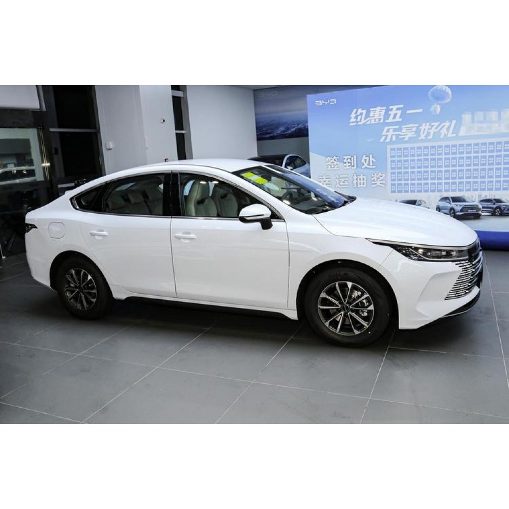 BYD Seal 05 2025 Intelligent Driving Edition Luxury White/Gray — это современный гибридный седан на платформе DM-i 5.0, сочетающий элегантный дизайн, высокий уровень комфорта и передовые технологии. Модель оснащена 1.5-литровым турбированным бензиновым двигателем и передним электромотором, а также литий-железофосфатной «Blade» батареей ёмкостью 8,3 кВт·ч, обеспечивающей чисто электрический запас хода до 55 км по циклу WLTC. Экстерьер выполнен в классическом белом цвете, интерьер — в светло-серой гамме с премиальной отделкой. Суммарная мощность гибридной силовой установки составляет 197 л.с. (145 кВт). Автомобиль расходует всего 3,8 л/100 км в смешанном цикле и может проехать более 1 200 км без дозаправки. В комплектацию Luxury входят 15,6-дюймовый поворотный мультимедийный экран, цифровая приборная панель, система DiPilot уровня L2, подогрев и вентиляция передних сидений, двухзонный климат-контроль и панорамная крыша.
