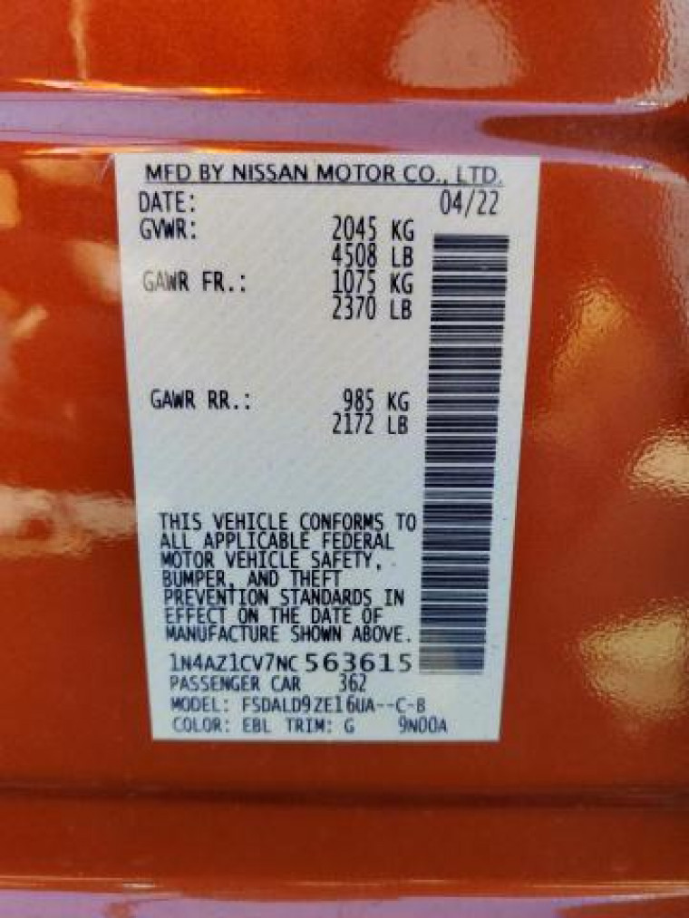 VIN: 1N4AZ1CV7NC******